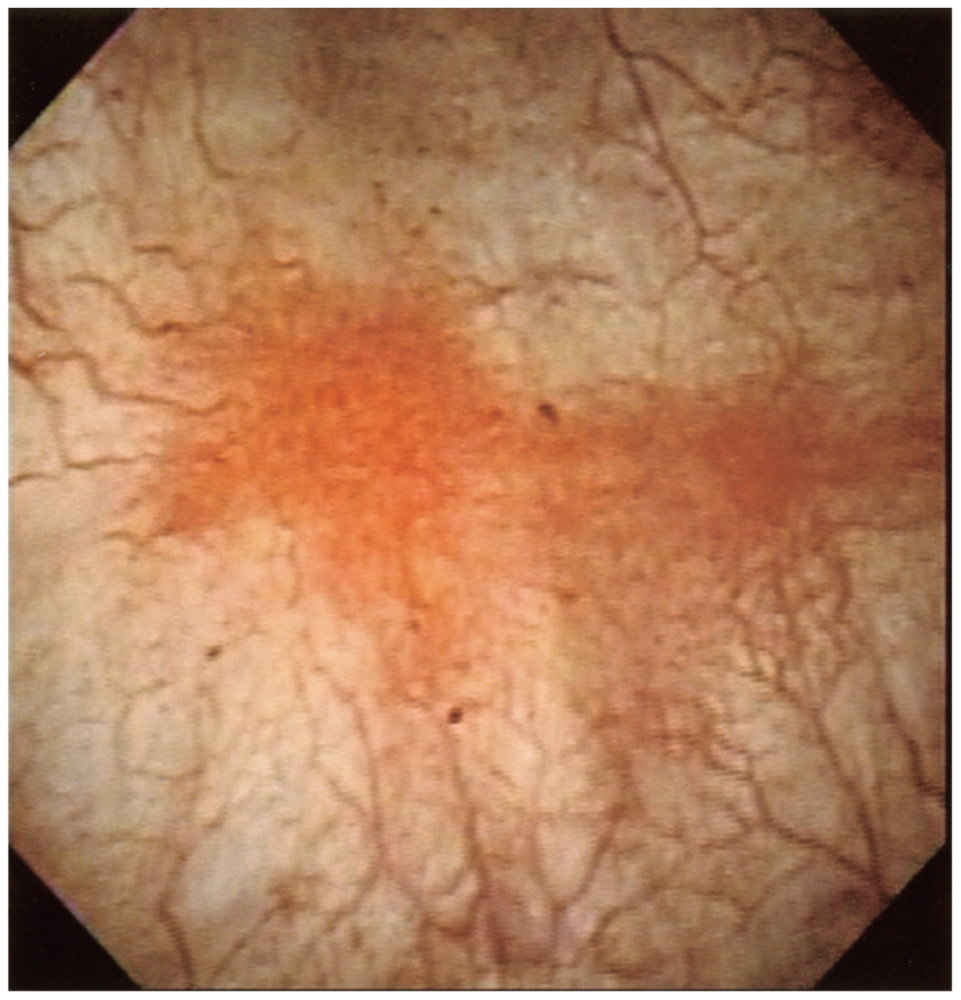 45歳の女性。6か月前からの下腹部痛と頻尿を主訴に来院した。下腹部痛は尿が膀胱に溜まってくると悪化し,排尿後には疼痛の改善がみられる。排尿回数は,20~25回/日であった。尿細胞診は陰性。膀胱鏡像を下に示す。